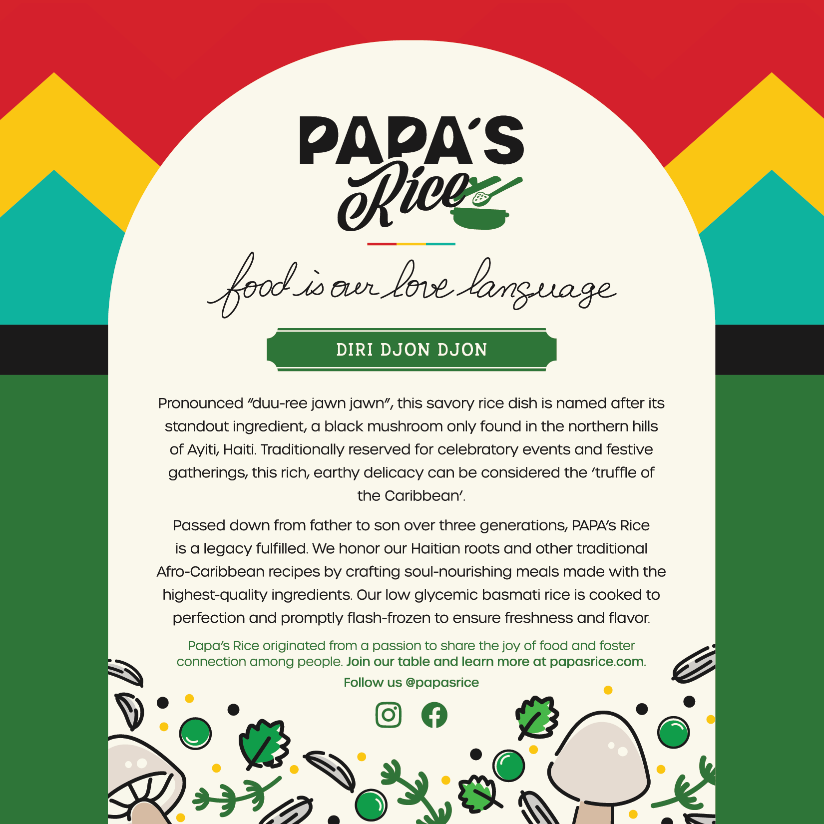 Our authentic Haitian black rice (Diri ak djon djon) embodies a distinctive blend of flavors and culture, Creating a savory experience for the taste buds.